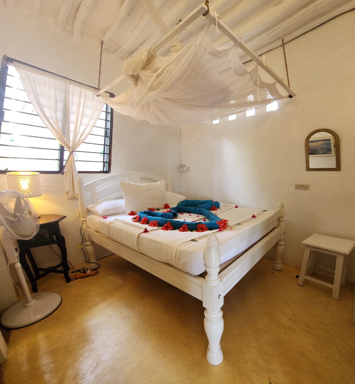 Rooms include Wi-Fi, comfortable beds, bedside charging points, ceiling fans or AC (selected rooms), and a private safe. Bathrooms feature walk-in showers, fresh towels, toiletries, and slippers. Some rooms offer balconies or terraces with garden or nature views, ideal for mindful relaxation.